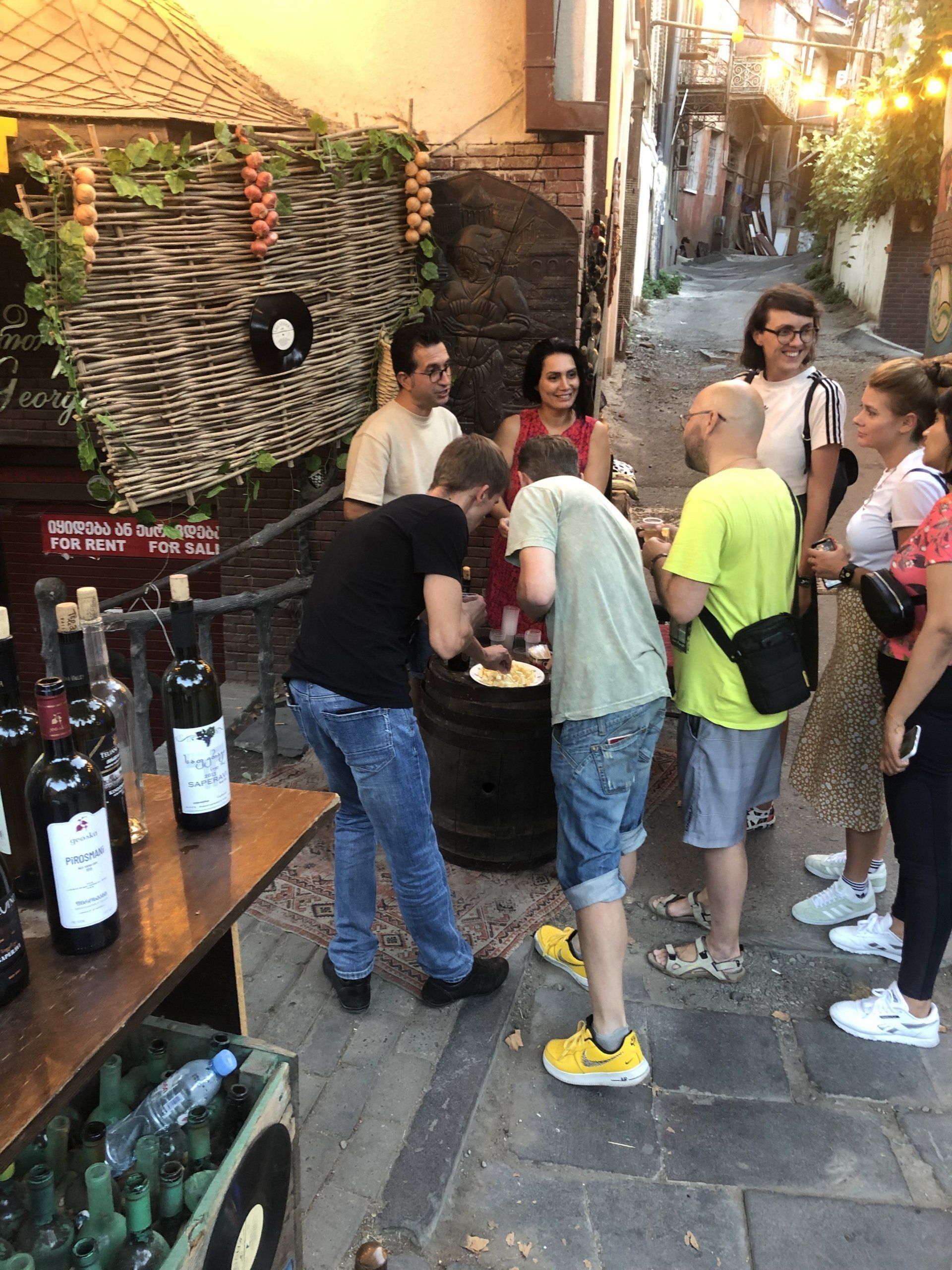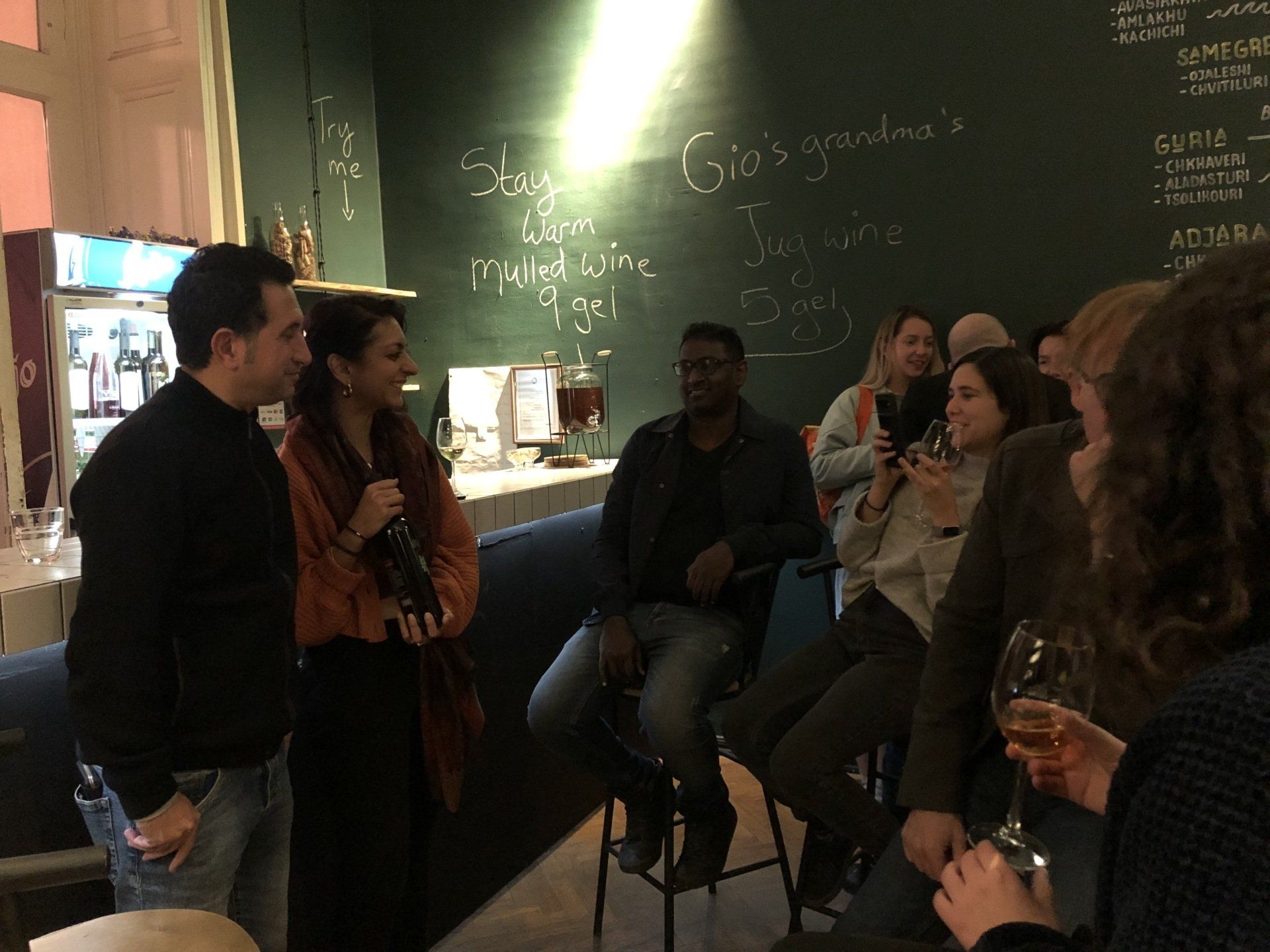 16 декабря 2022 года у нас был винный праздник в одном из лучших винных магазинов Тбилиси. на этом мероприятии у нас было много гостей разных национальностей, и мы устроили несколько развлечений.