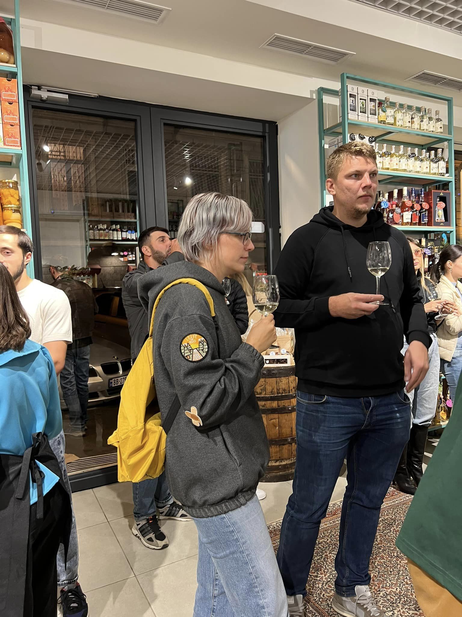 Вы можете зайти в этот магазин с семьей или друзьями прекрасным тбилисским вечером и насладиться дегустацией традиционного грузинского вина в компании других посетителей и пережить счастливые часы. Участие в этих мероприятиях бесплатное и вам обязательно понравится. Коллега магазина Sasmori встречает гостей и угощает их лучшими винами.